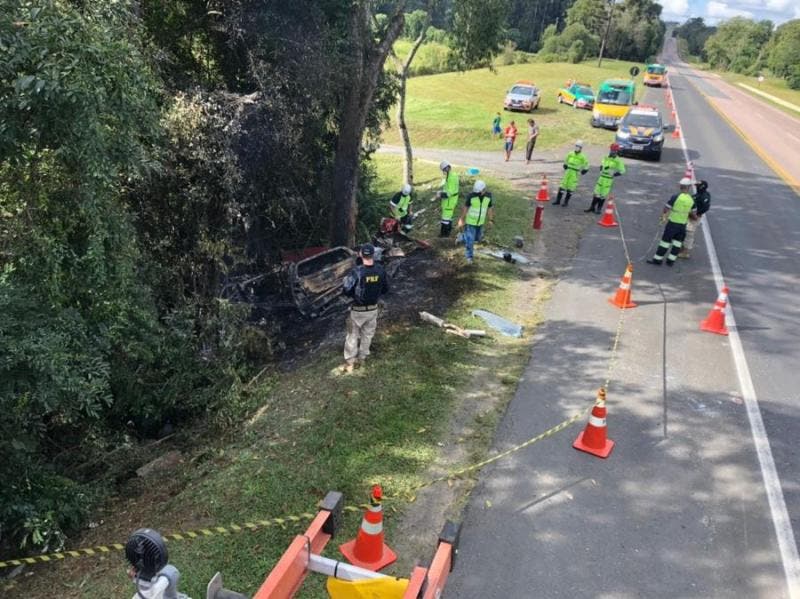O veículo chegou a pegar fogo. Quando chegaram ao local do acidente, os bombeiros constataram que a vítima já estava sem sinais vitais. As equipes realizaram o rescaldo do veículo. A Polícia Rodoviária Federal (PRF) e a Arteris Litoral Sul, concessionária que administra a rodovia, também foram acionadas.