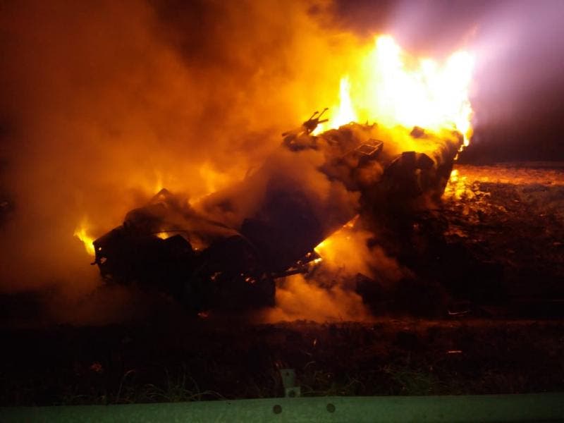 O acidente aconteceu por volta da 1h15min, no km 370 da rodovia. O caminhão que pegou fogo era um Volvo 330, com placas de Içara, e ficou totalmente destruído pelas chamas. O outro motorista, de 43 anos, saiu ileso. Ele conduzia um Mercedes Benz com placas de Morro da Fumaça.