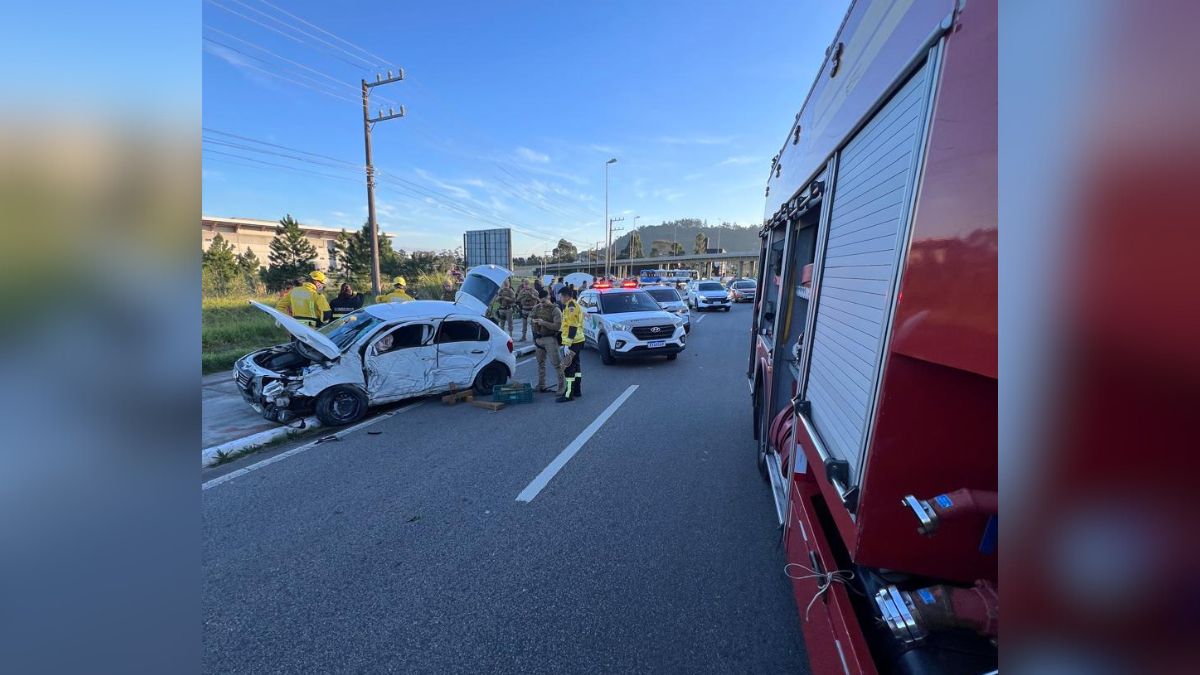 O Corpo de Bombeiros Militar de Santa Catarina (CBMSC) foi acionado, por volta das 16h35min, para atender um acidente de trânsito na Avenida Luiz Boiteux Piazza. Segundo testemunhas, havia uma vítima presa no interior do veículo.