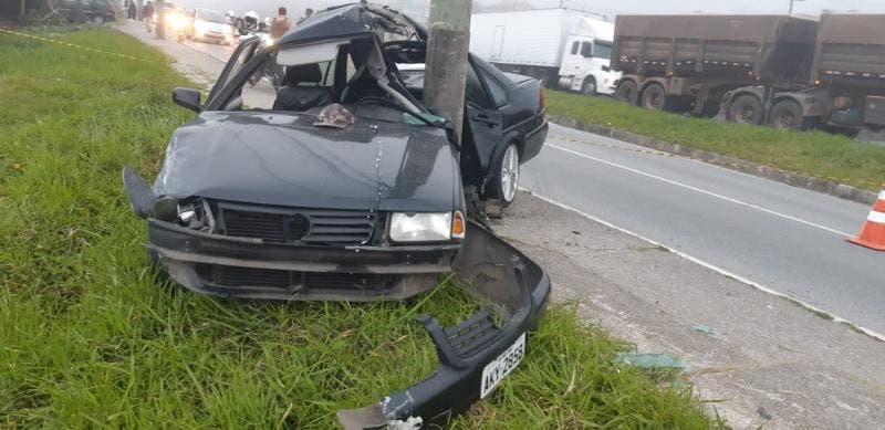 Ainda conforme a PRF, a vítima fatal era um homem que conduzia um Santana, com placas de São José. O carro teria trocado de faixa para acessar a marginal da rodovia e se chocado em outro veículo, um Peugeot. Com a batida, o Santana colidiu um poste, e o Peugeot capotou.