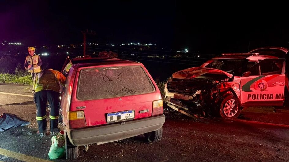 Uma colisão frontal entre uma viatura da Polícia Militar e um carro matou um motorista na BR-470, em Rio do Sul, na noite de quinta-feira (18). Os militares se feriram, assim como um suspeito que estava sendo levado na parte de trás do veículo.