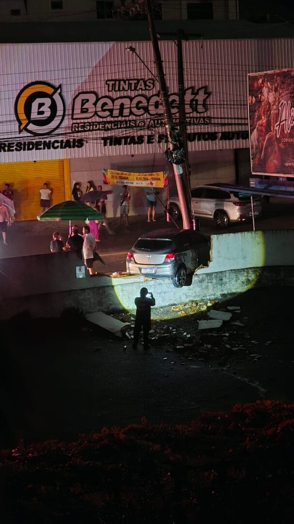 Bombeiros, Polícia Militar e Guarda de Trânsito atenderam a ocorrência. O carro, um Onix, só parou ao atingir um poste, o que acabou deixando cerca de 1,6 mil imóveis da região sem luz. Uma imagem (ver fotos abaixo) mostra que o veículo também bateu em um muro e ficou com uma roda traseira suspensa.