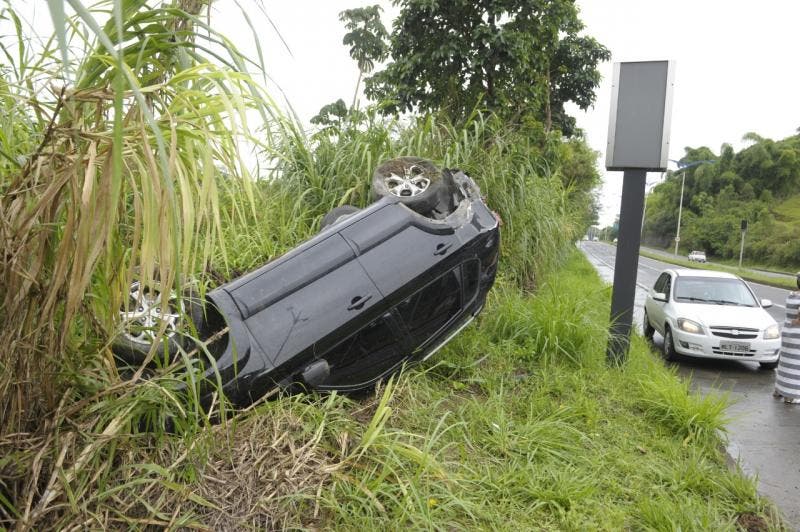 O motorista de 19 anos perdeu o controle do Hyundai Tucson com placas de Gaspar, capotou e parou sobre a vegetação ao lado da via, próximo à lombada eletrônica.