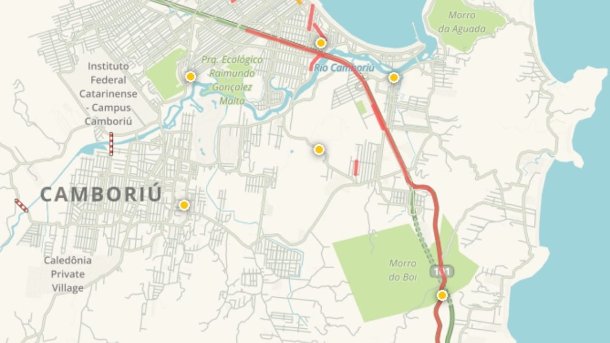 Já em Itajaí, o trânsito na rodovia fluía lentamente, parando em alguns momentos, entre o km 113 e o km 125, sentido Sul, também por causa da grande quantidade de veículos. Na BR- 101, entre o km 136 e o km 140, no Morro do Boi, sentido Sul, também há formação de filas.