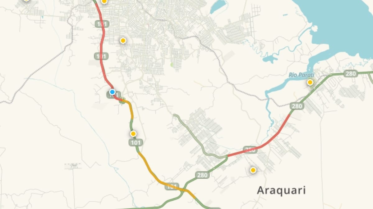 A Arteris também divulgou pontos de lentidão na BR-101/SC no sentido Porto Alegre por volta das 17h. Os trechos mais críticos estão no km 43 (Joinville) e o km 58 (Araquari).
