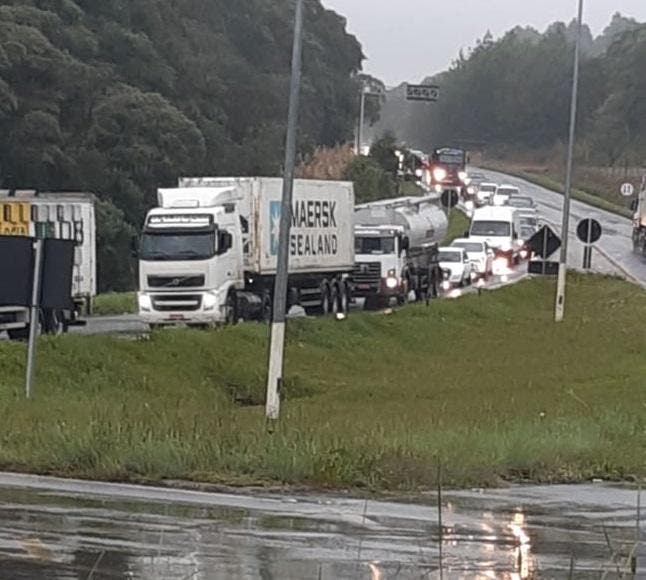 Conforme a Polícia Rodoviária Federal (PRF), por volta das 10h o trânsito estava parado na BR-101 em Balneário Camboriú, no sentido Norte, e com tráfego intenso no sentido Sul.