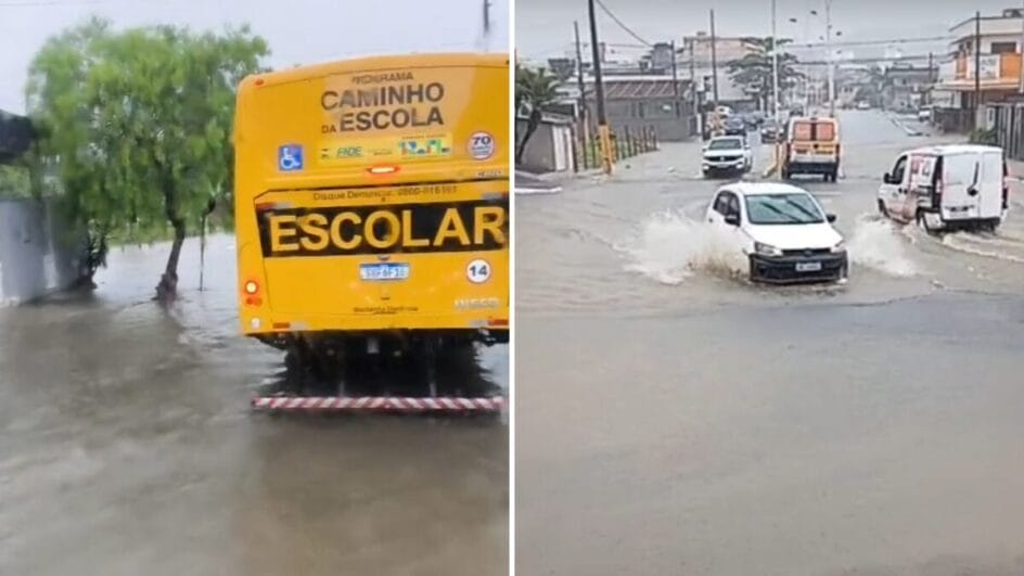 Em registros de vídeo, é possível ver a situação de risco vivenciada no trânsito do município na manhã dessa atípica segunda-feira (7).