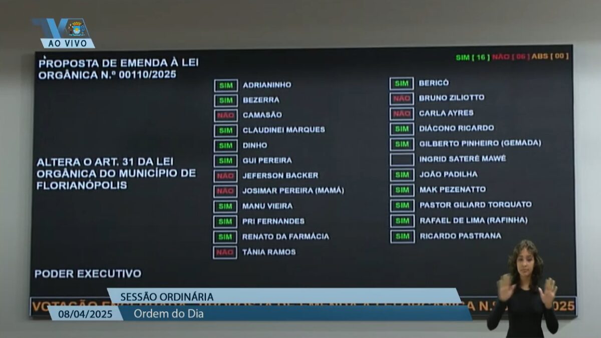 A Câmara de Vereadores de Florianópolis aprovou, em primeira votação na terça-feira (8), a mudança da Lei Orgânica do município que altera a idade e o tempo de contribuição dos servidores, se adequando à lei federal. Com isso, mulheres passam a se aposentar com a idade mínima de 62 anos e homens, com 65 anos de idade. No entanto, o Projeto de Lei Complementar nº 1976/2025 segue em análise pelos parlamentares.
