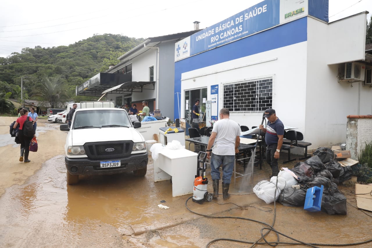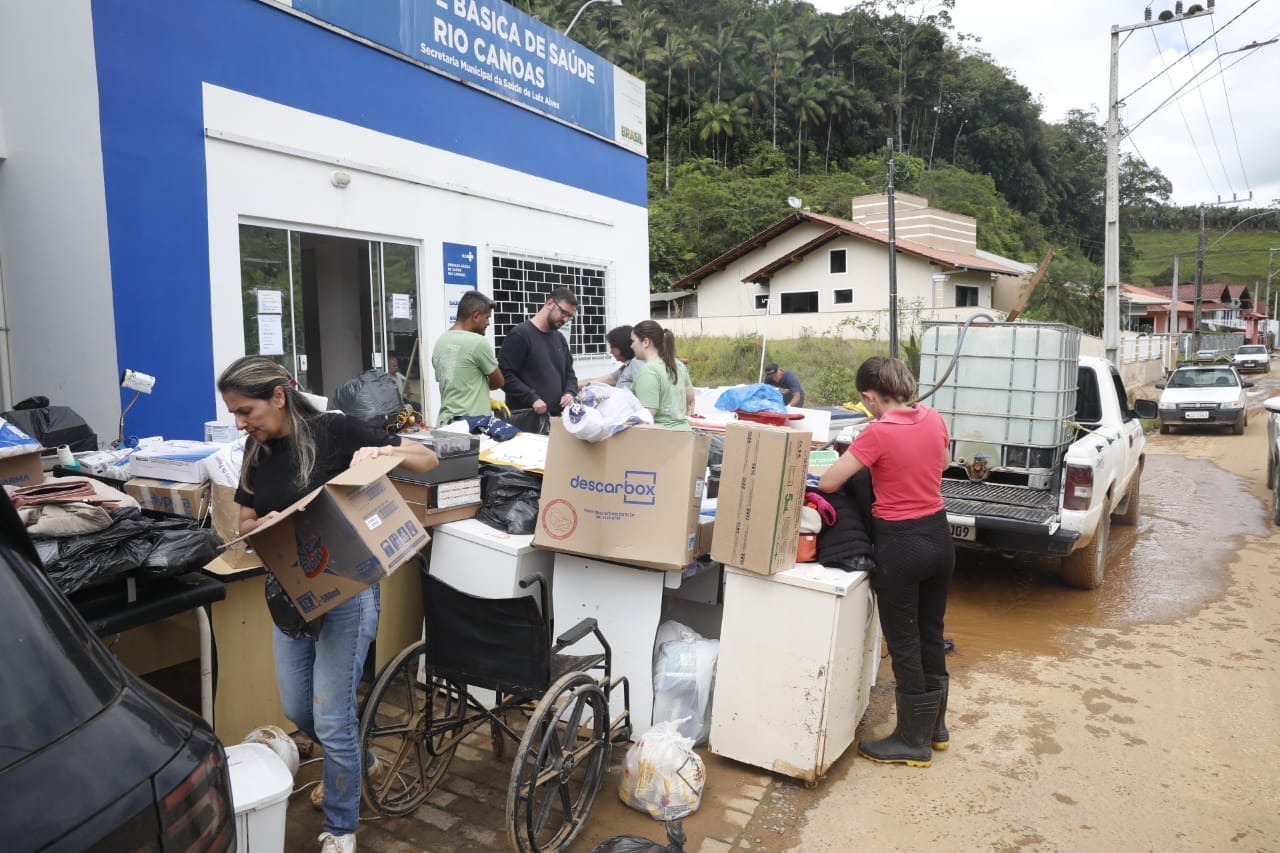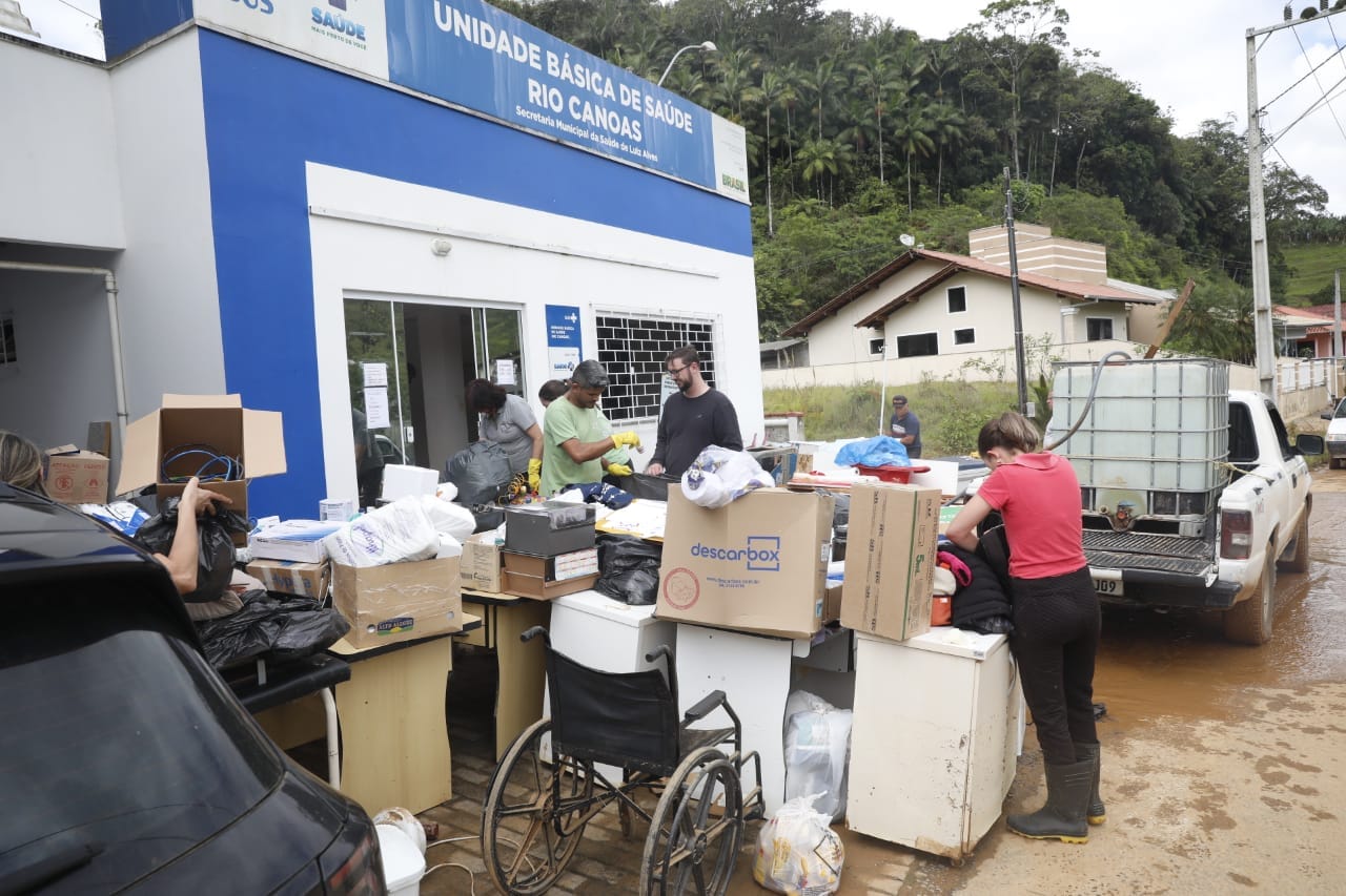 Com motivos, Maria do Carmo não foi ajudar na limpeza da Unidade Básica de Saúde Rio Canoas, onde trabalha. Por lá, uma força-tarefa da prefeitura lava as paredes e o piso. Todos os móveis estão na calçada. Os computadores foram recolhidos para ver se ainda será possível usá-los. Medicamentos foram perdidos. As vacinas que estavam na geladeira não chegaram a molhar, mas agora precisa passar por uma avaliação para saber se podem ser usadas. Reabrir as portas à comunidade, só na próxima semana, acredita a prefeitura de Luiz Alves.