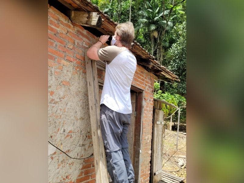 Gilberto Ademar Duwe, biólogo da Fundação Jaraguaense do Meio Ambiente (Fujama), conta que a mulher ligou desesperada relatando a presença das serpentes no banheiro, que estavam entrando pelo vão do telhado.