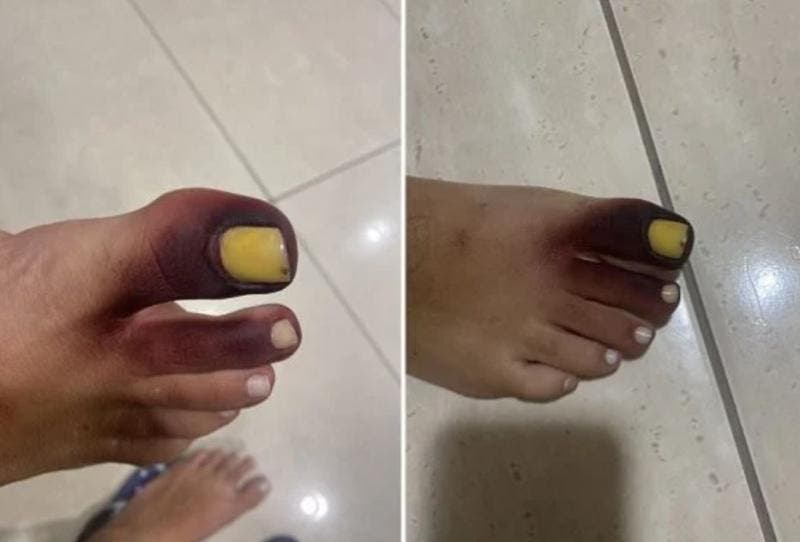 “Notei que tinha um bicho no meu sapato, quando bati o tênis vi que tinha um gongolo, matei ele, calcei o tênis novamente e segui com o meu dia. Quando eu cheguei em casa 19h, eu tirei um tênis, vi que o meu pé estava desse jeito”, contou no Twitter, junto a fotos do estado do pé.