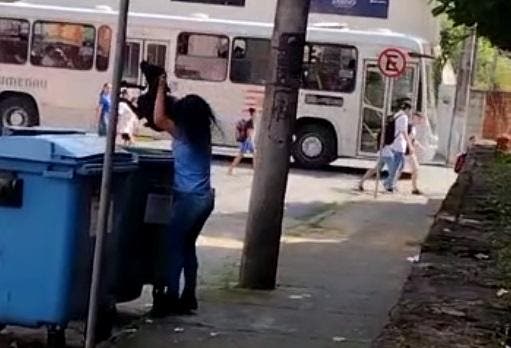 Uma cena de maus-tratos foi flagrada em Blumenau nesta quinta-feira (28), quando um cachorro foi jogado no lixo por uma mulher. O caso aconteceu no Garcia, ao lado da Escola Santos Dumont, e revoltou internautas nas redes sociais depois que o vídeo do flagrante foi divulgado. A Polícia Civil deve investigar o caso.