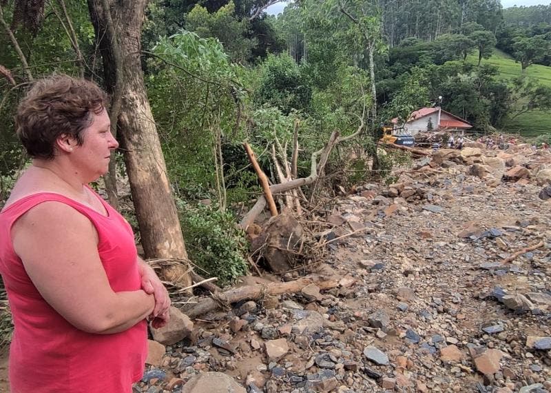 Era a cunhada, Francielli Wiese, que morreu horas depois no hospital. Os socorristas então avisaram que três casas com as famílias dentro foram arrastadas pela enxurrada.