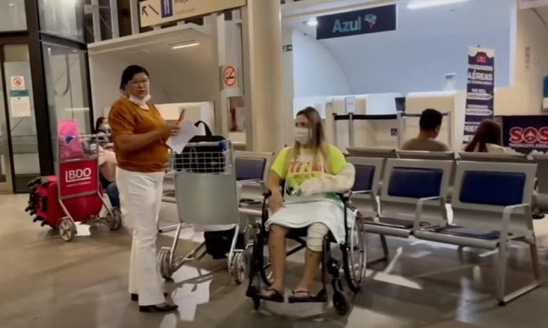 O desabafo foi feito em um vídeo publicado no Youtube. Ela conta que havia comprado passagens para Florianópolis, com conexão em Guarulhos, em São Paulo. Porém, ao chegar no aeroporto, descobriu que precisava ser avaliada por um médico da companhia aérea antes de embarcar.