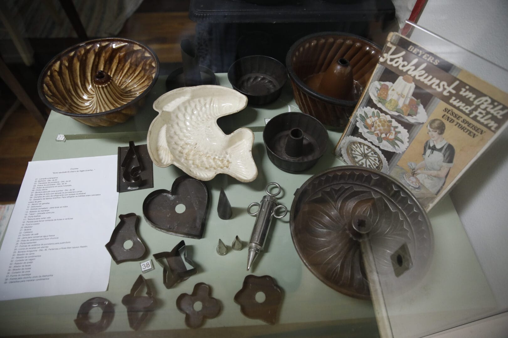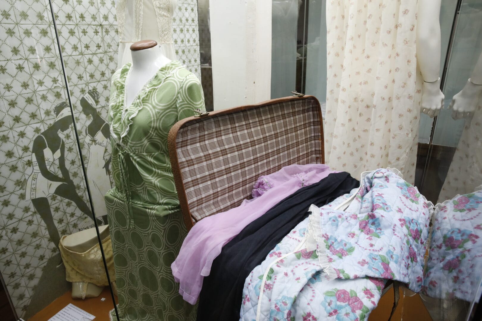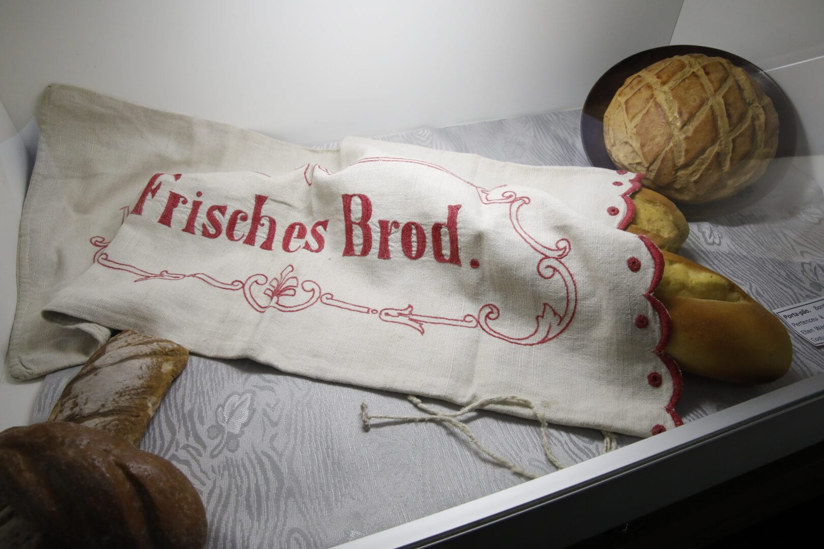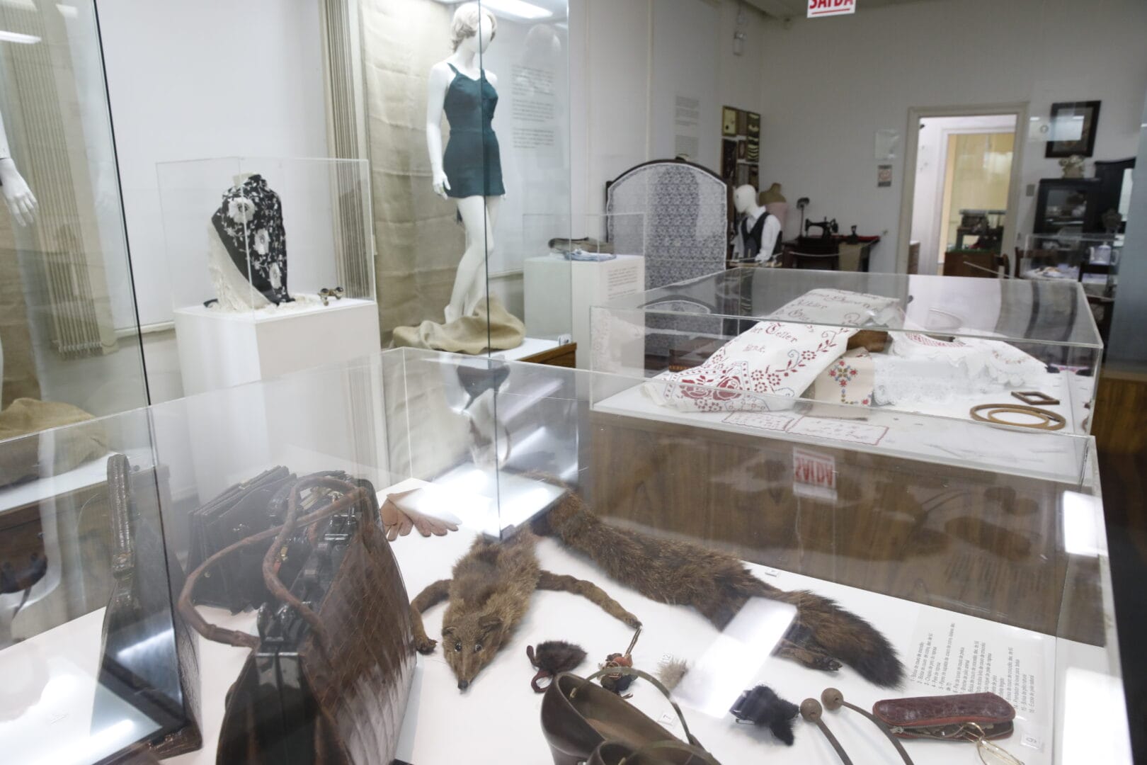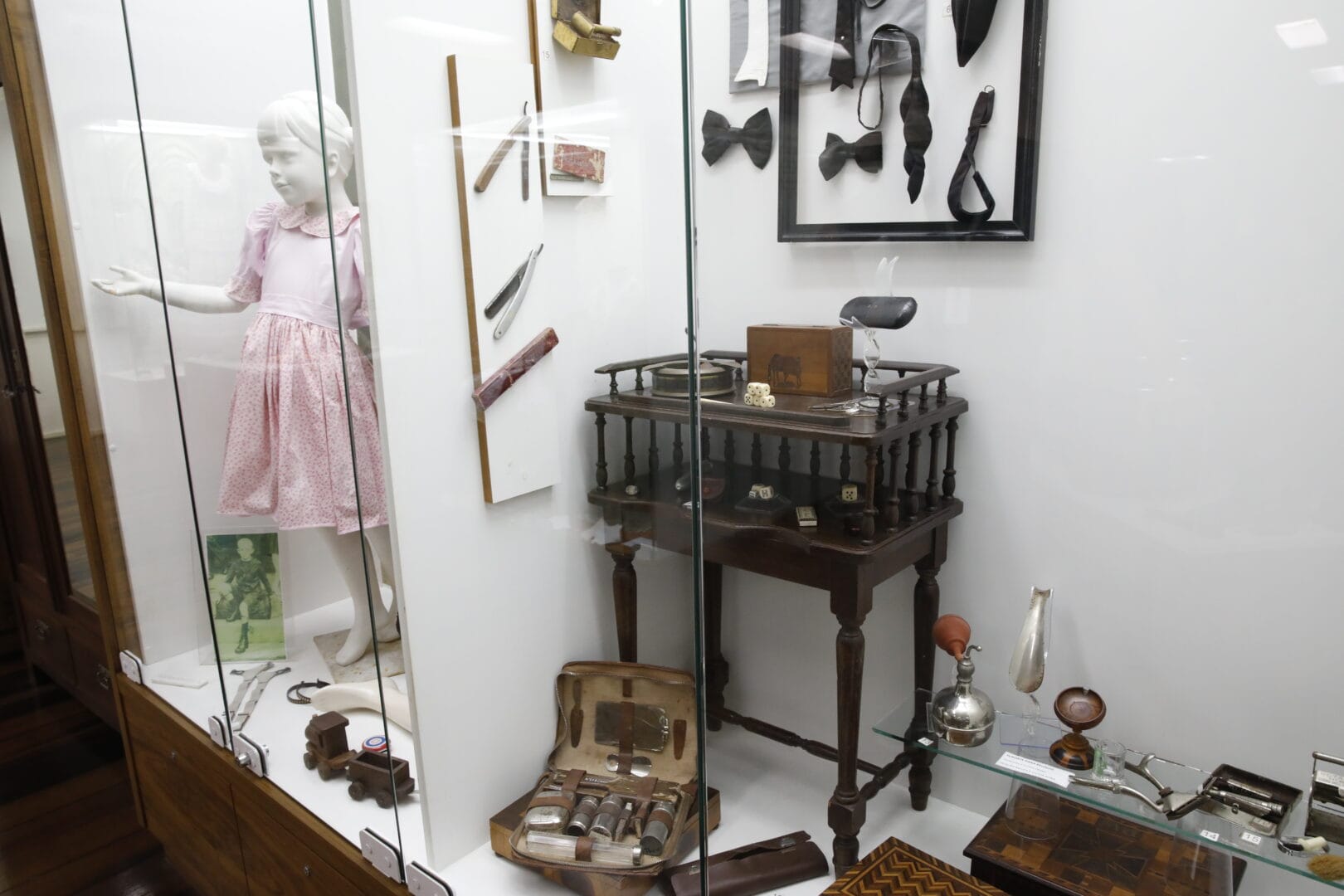 Dentro das vitrines, os objetos contam histórias que os livros raramente registram. Um exemplo isso é a maleta feita de couro de jacaré-do-papo-amarelo, datada entre os anos 1930 e 1940, pertenceu a Annegrete Karin Von Kounlauch. Não foi comprada em nenhuma loja, o jacaré era doméstico, da família.