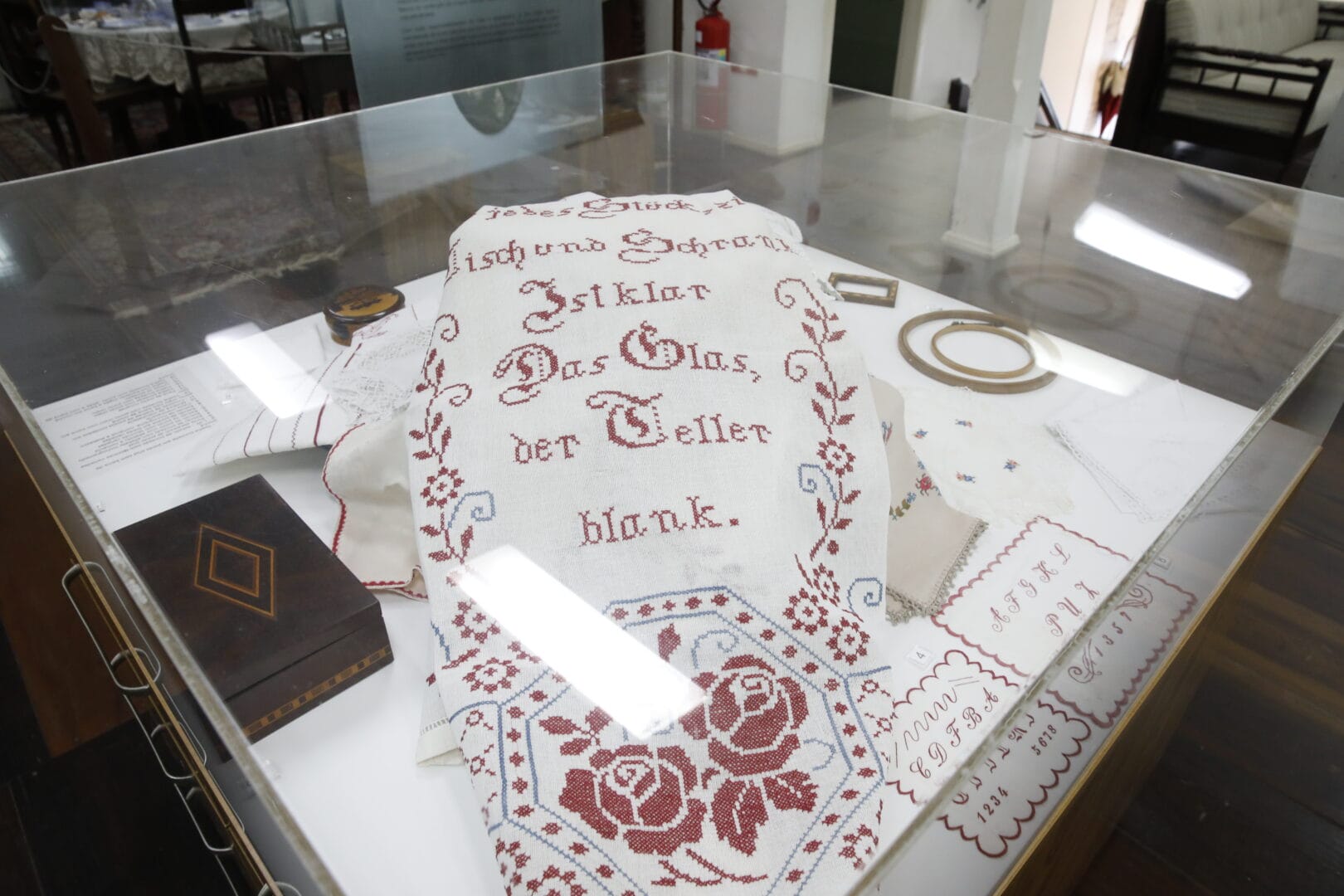 O acervo de 5 mil objetos veio, em grande parte, de uma mulher que passou a vida juntando o que os outros não costumavam prestar atenção. Diferente do Museu da Família Colonial, que foca nos períodos específicos de vivência dos fundadores de Blumenau, cada item pertence ao abrangente universo do vestir, costurar, brincar e orar vivenciado a partir do século 19.