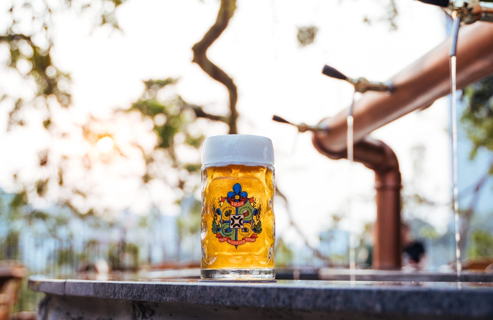 O acervo inicial veio de equipamentos da antiga Cervejaria Feldmann e da Brahma, que era a cerveja oficial da Oktoberfest, mas foi uma reforma após 2020 que transformou o lugar no espaço sensorial que é hoje.