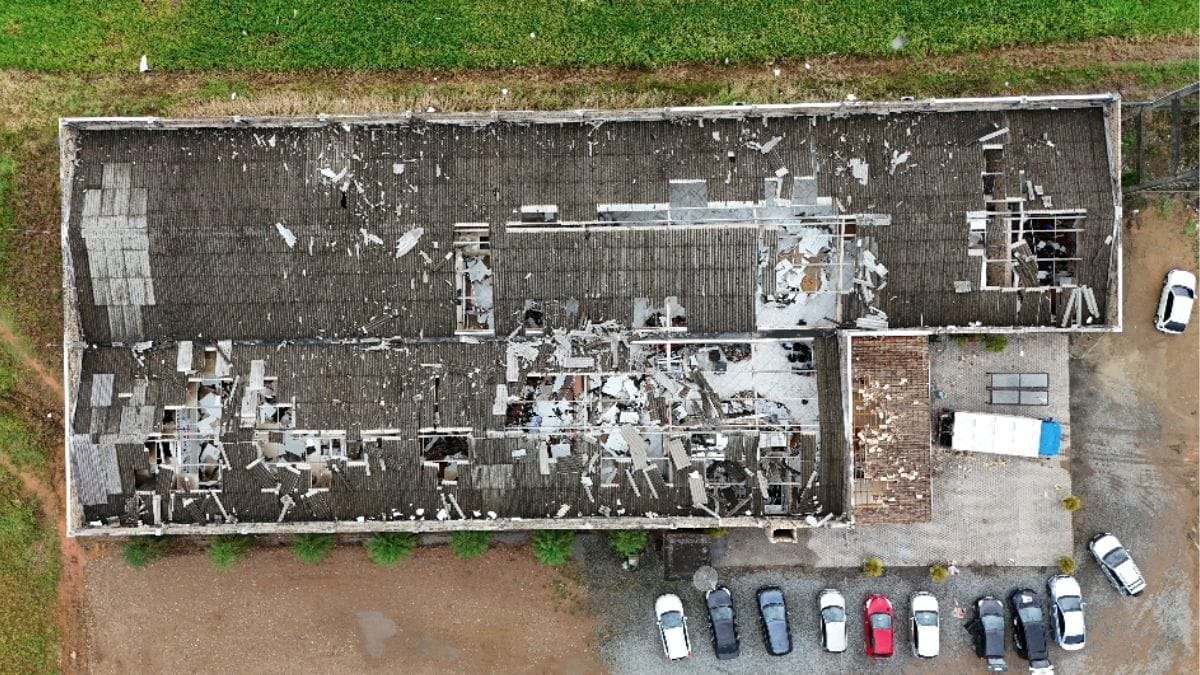 O primeiro a chegar no local foi Alexandre José Claudino, que há 15 anos atua como gerente do salão. Ele revela que o fenômeno também causou danos à sua casa, onde o forte vento derrubou cerca de 250 telhas. Por isso, decidiu ir até a sociedade para verificar a situação.