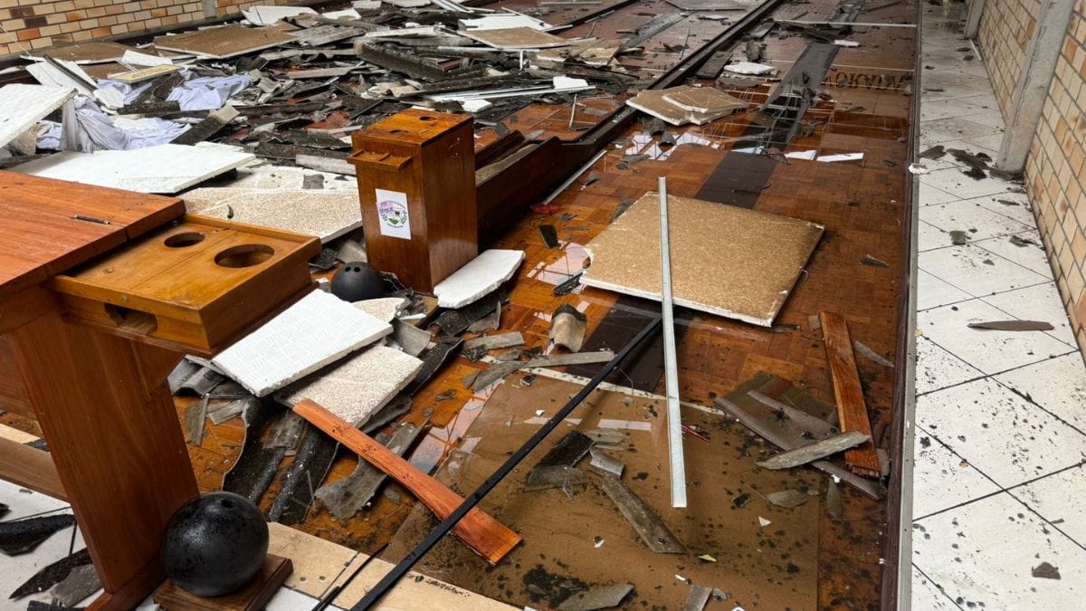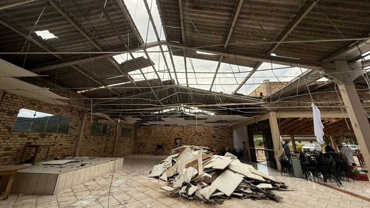 — Quando eu cheguei aqui tava tudo destruído já. Não sobrou nada em pé, sobrou só a parte da estrutura por fora. Mesas, cadeira, prataria quebrou bastante… Vento é a força da natureza, não tem o que fazer, né? Então, o estrago foi grande, o prejuízo foi bastante. Eu calculo em torno dos R$ 350 mil de prejuízo — conta.