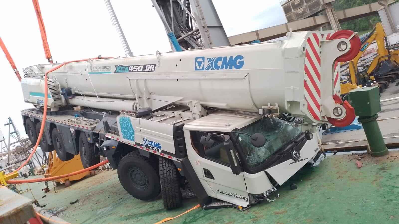 Com o impacto da queda, na última terça-feira (17), a cabine do veículo de 55 toneladas ficou destruída. Apesar do susto, no entanto, a assessoria do terminal portuário informou que ninguém ficou ferido.