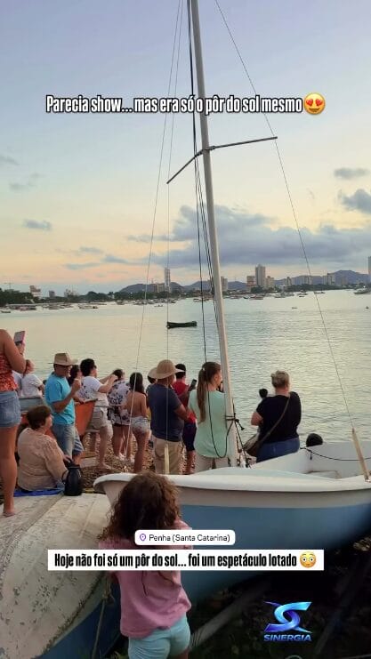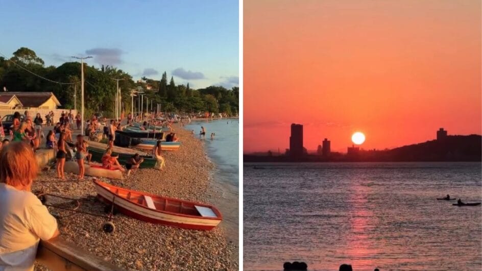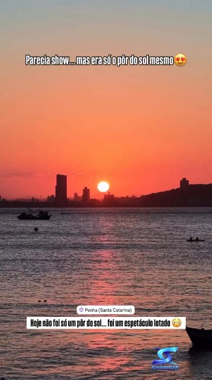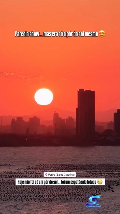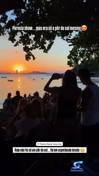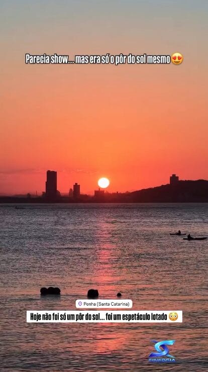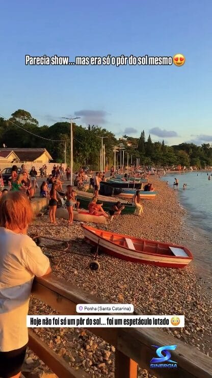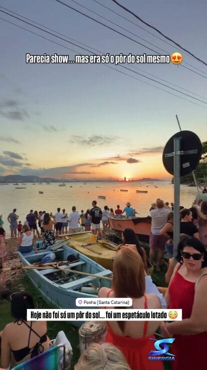 Se engana quem pensa que apenas grandes destinos turísticos como Arpoador (RJ) e Jericoacoara (CE) têm pôr do sol de cair o queixo. Prova disso são as milhares de pessoas que se reúnem para apreciar a paisagem direto da orla da Praia do Cascalho, em Penha, no Litoral Norte de Santa Catarina. Imagens divulgadas no Instagram pelo perfil Marcos.NVT mostram o espetáculo neste domingo (19).