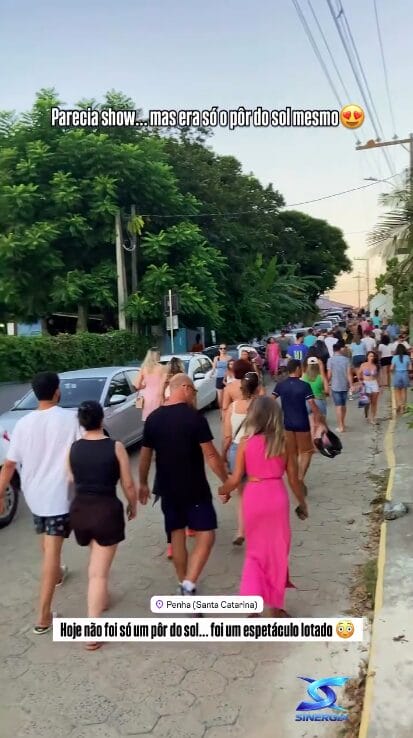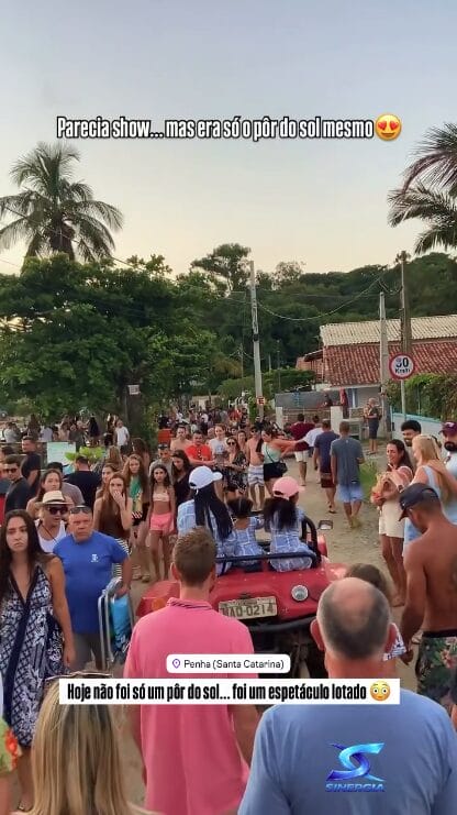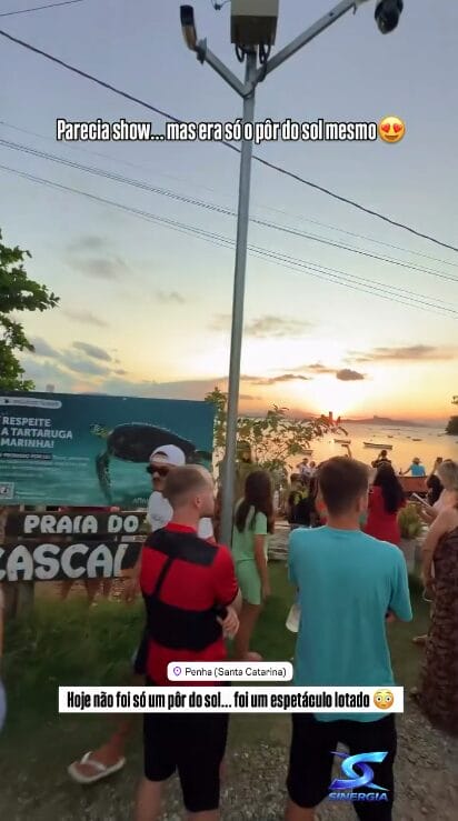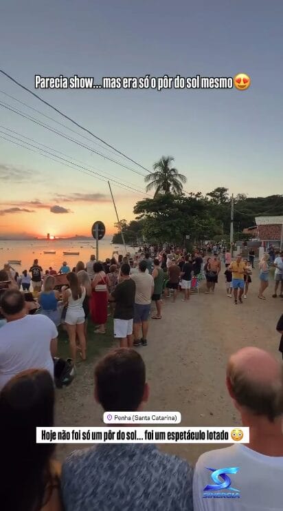 O vídeo com as imagens do pôr do sol de domingo rendeu vários comentários, inclusive com relatos de quem estava lá pessoalmente: “Estava a coisa mais linda mesmo. Só quem viu de perto sabe como estava maravilhoso”, citou um perfil. Outro escreveu: “Eu estava lá. Foi um show mesmo da grandiosidade de Deus, Ele caprichou em cada detalhe”. “Hoje superou de gente por aqui”, contou outra internauta.