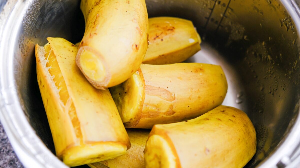 Após o cozimento, a fruta apresenta uma consistência firme, mas ao mesmo tempo macia, o que favorece o preparo de purês salgados. Essa característica permite substituir ingredientes tradicionais sem comprometer o resultado.
