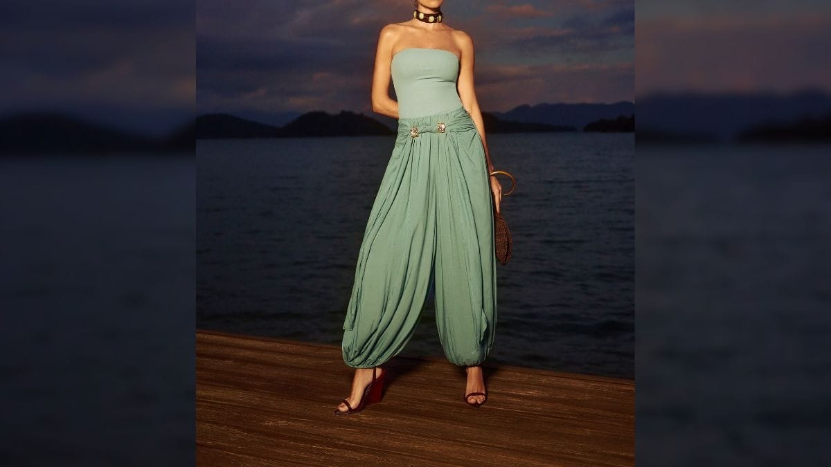 Outro modelo que deve ser tendência neste ano é a calça aladim. Também conhecida como genie pants, harém ou balonê, a peça tem uma modelagem ampla, cintura alta, frequentemente com elástico, e um gancho baixo.