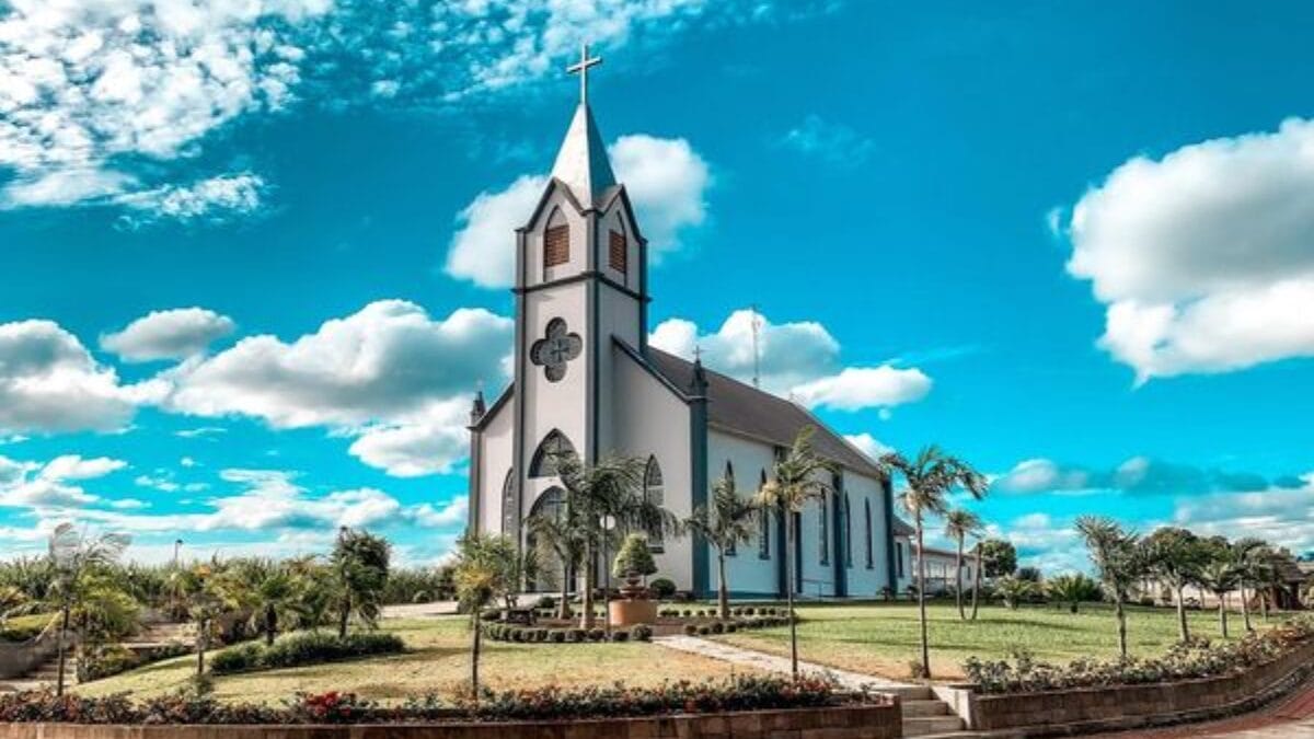 Igreja Matriz São João Berchmans, em São João do Oeste, é considerada a maior igreja totalmente de madeira da América Latina (Foto: Portal do Turismo, Divulgação)