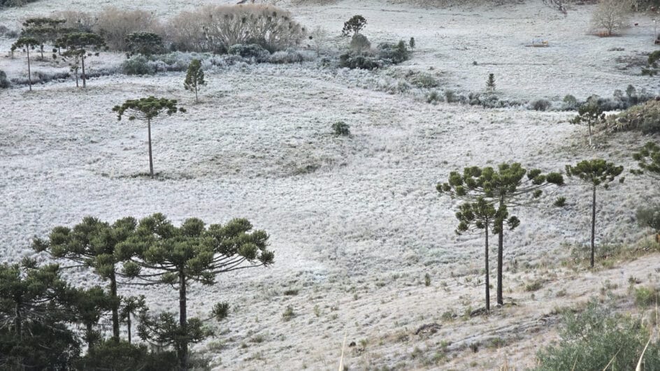 Além do frio intenso, existe uma pequena chance de precipitação invernal, como neve e chuva congelada, especialmente entre a noite de segunda (23) e a manhã de terça-feira (24), em áreas de maior altitude. Isso ocorre devido à combinação entre a umidade da frente fria e a entrada da intensa massa de ar polar.