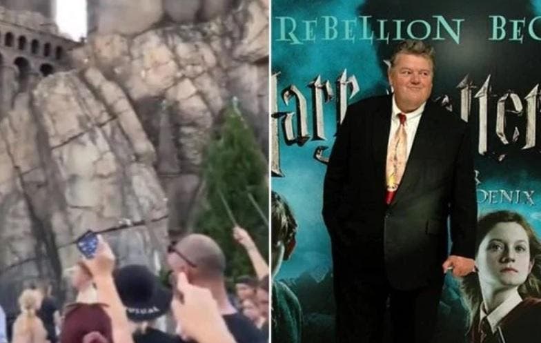 Fãs de Harry Potter se reuniram nessa manhã em frente a Hogwarts nos parques levantando suas varinhas e guarda-chuvas rosas em homenagem ao falecimento do ator Robbie Coltrane! pic.twitter.com/KyMIU81Sxn