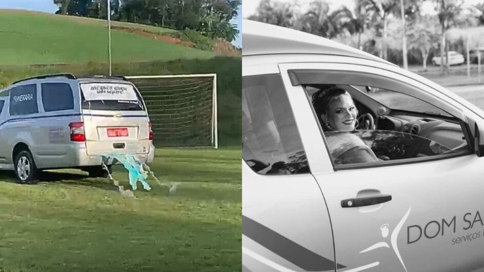 Além da entrada inusitada, os noivos ainda fizeram uma plaquinha para o carro com a frase “Até que a morte nos separe”, uma referência ao trabalho e ao apelido de Apollo, chamado de “Morte” por amigos, por ter se tornado um dos sócios da funerária.