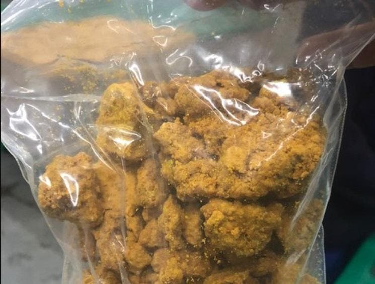 De acordo com a Receita, os cinco pacotes chamaram a atenção dos servidores quando passaram pelo scanner. Depois, a suspeita foi confirmada pelos cães de faro que sinalizaram algo de diferente nos volumes. Quando os agentes abriram os pacotes, encontraram cerca de 1,2kg de uma matéria sólida, compactada, de tom amarelo.