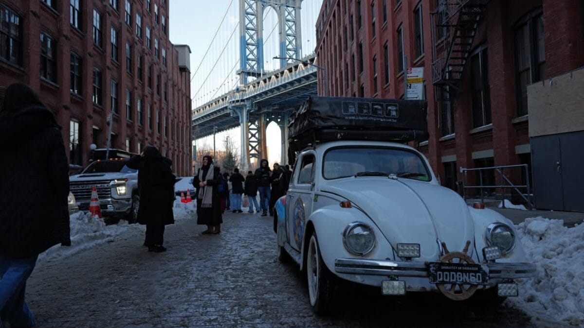 O ator Nicolas Prattes, que será protagonista do filme que eterniza a história do aventureiro Jesse Koz e seu fiel companheiro, o cão Shurastey, compartilhou novas imagens dos bastidores do longa. A equipe de filmagem está em Nova York, nos Estados Unidos, reproduzindo a jornada realizada pela dupla a bordo do fusca Dodongo.
