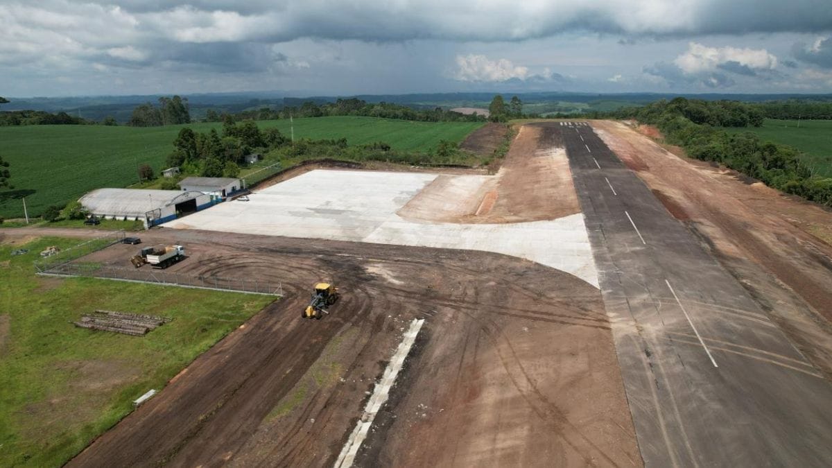 O novo aeroporto de Santa Catarina, que está em obras em Rio Negrinho, já teve etapas importantes finalizadas nos últimos dias. Atualmente, a pavimentação do pátio de manobras e do estacionamento já foi concluída. A previsão de conclusão dos trabalhos é dezembro deste ano, após investimento de R$ 4,6 milhões.