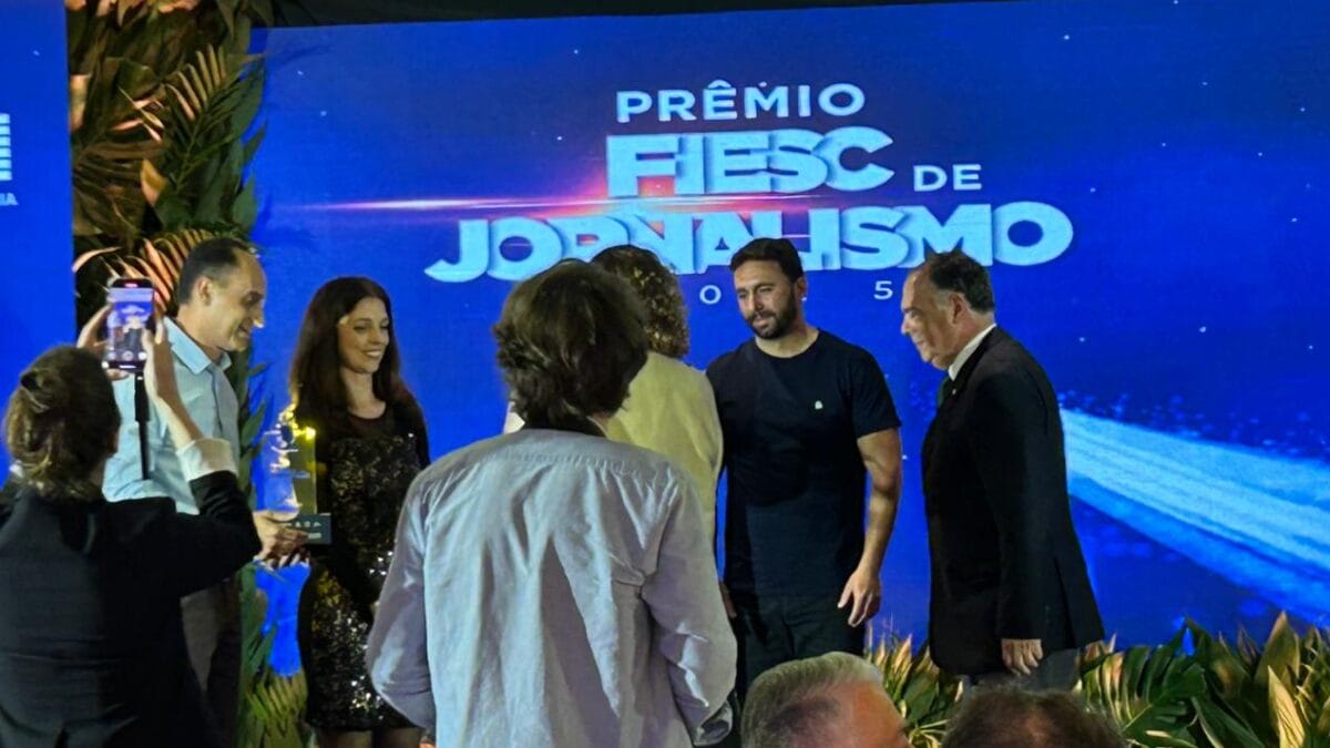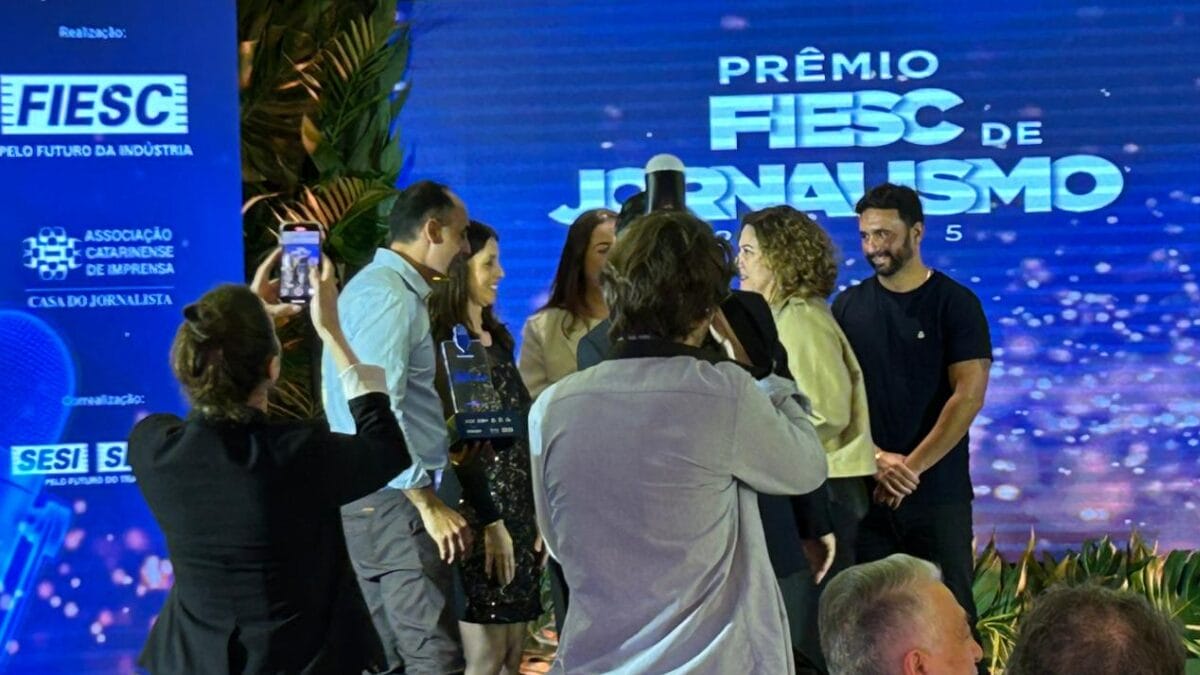 Seis jornalistas da NSC receberam o Prêmio Fiesc de Jornalismo 2025 na noite desta terça-feira (28). A premiação aconteceu na sede da Federação das Indústrias do Estado de Santa Catarina (Fiesc), em Florianópolis, e contou com a presença de profissionais da imprensa e lideranças da indústria.