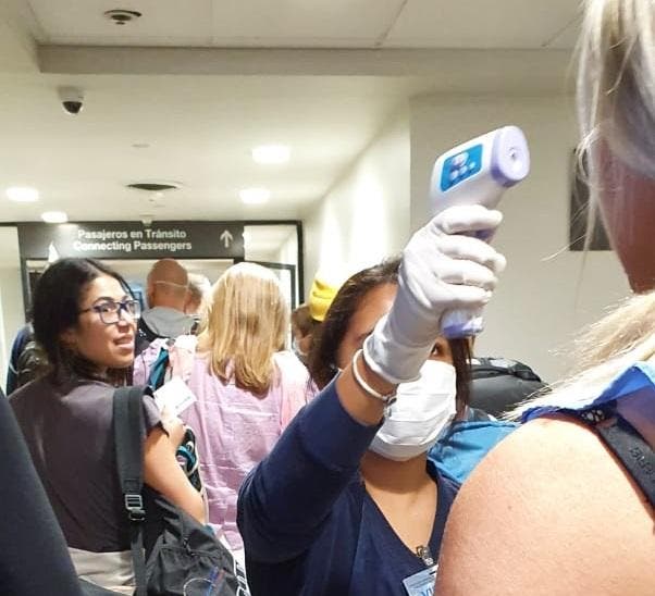 Mas no desembarque em Santiago, no Chile, que caiu a ficha: o mundo vivendo um surto. Foi um choque. Muito mais gente de máscara e todos que, mesmo de passagem pelo país como eu, tiveram que passar pela " blitz da temperatura". Pessoas com febre não entram no país. Vão direto pra quarentena. Passei pelo exame e segui viagem.