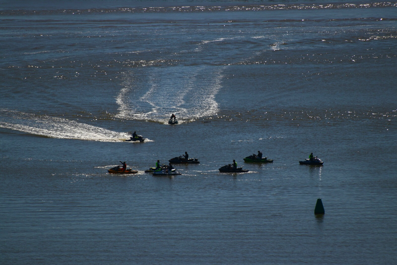 Grupo com motos aquáticas se reúne para curtir a paisagem da cidade nas águas do Rio Itajaí-Açu