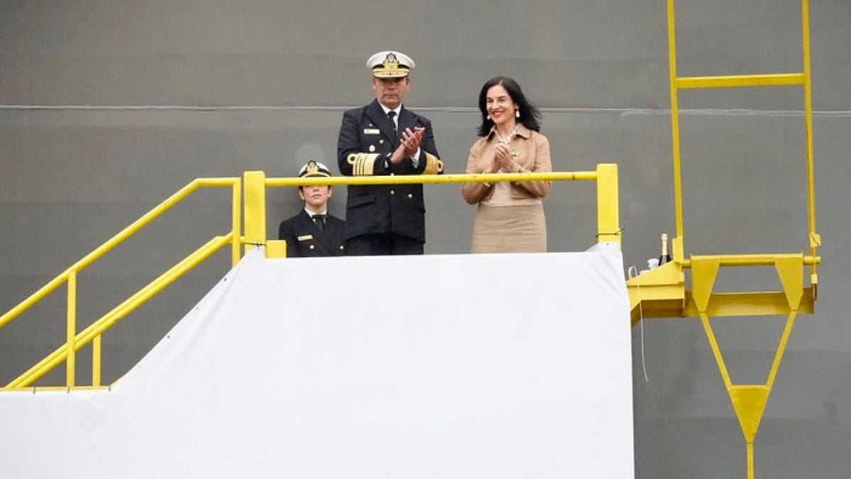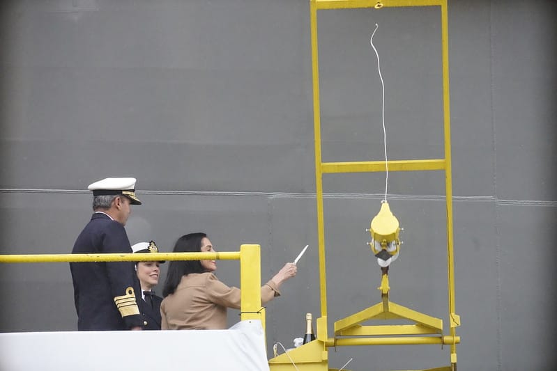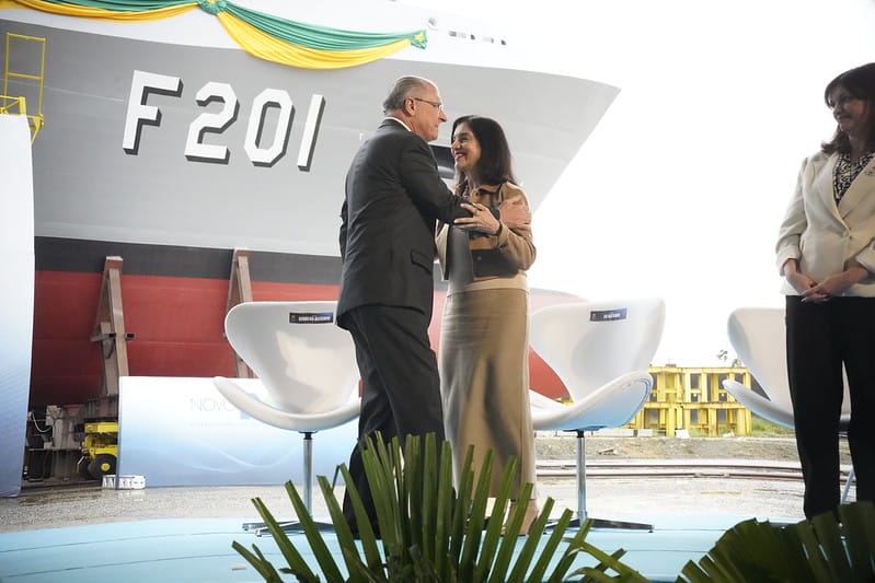 Batismo de Lu Alckmin e nada de tarifaço: como foi lançamento de “navio de guerra” feito em Itajaí