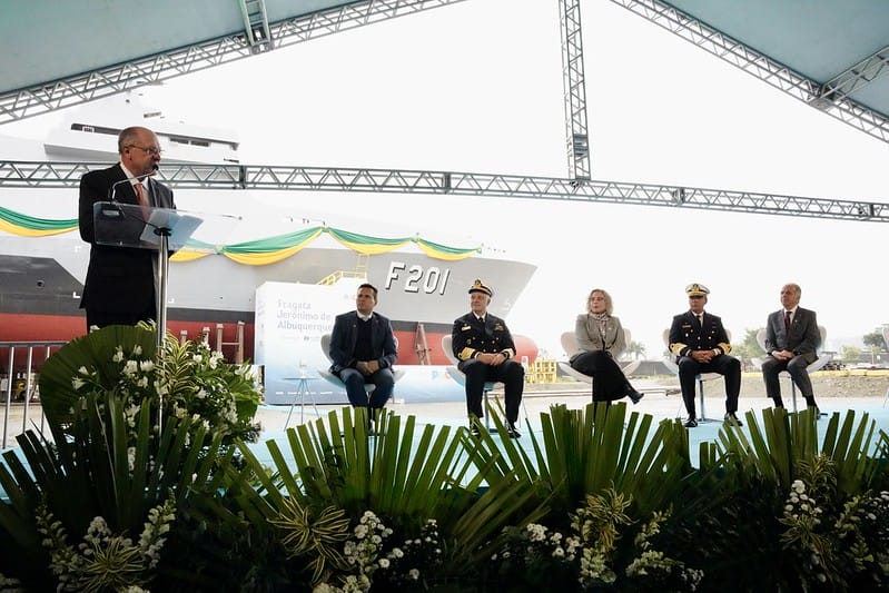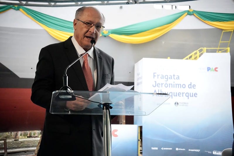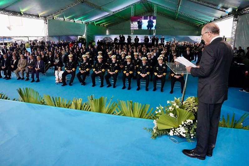 Vice-presidente Geraldo Alckmin lança “navio de guerra” fabricado em Itajaí