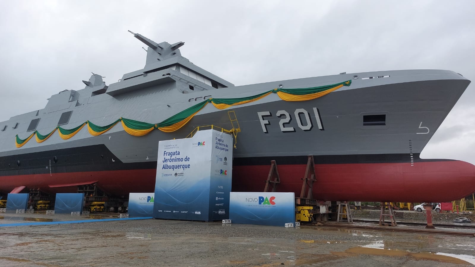A Fragata “Jerônimo de Albuquerque” teve o primeiro corte de chapa feito em novembro de 2023. O navio tem 107 metros de comprimento, 3,5 mil toneladas de deslocamento e capacidade para 130 tripulantes. A previsão é de que seja entregue à Marinha do Brasil em janeiro de 2027, ampliando as capacidades operativas da Força Naval. A construção é feita pela Sociedade de Propósito Específico (SPE) Águas Azuis, formada pelas empresas thyssenkrupp Marine Systems, Embraer Defesa e Segurança e Atech, subsidiária da Embraer, em parceria com a Marinha do Brasil.