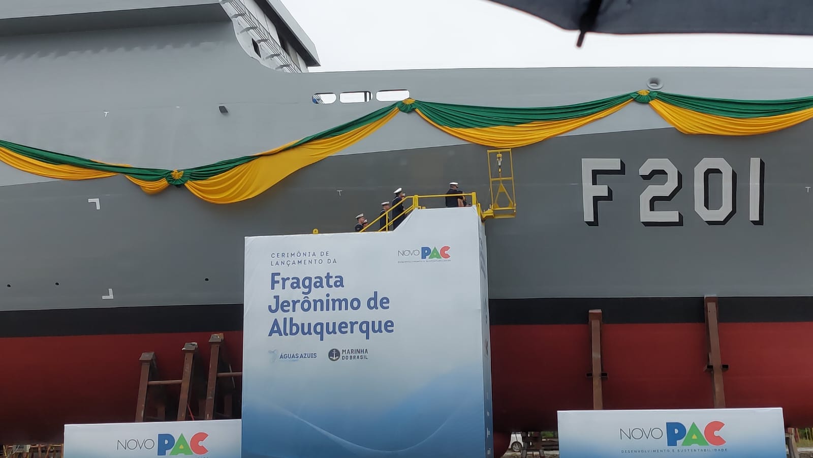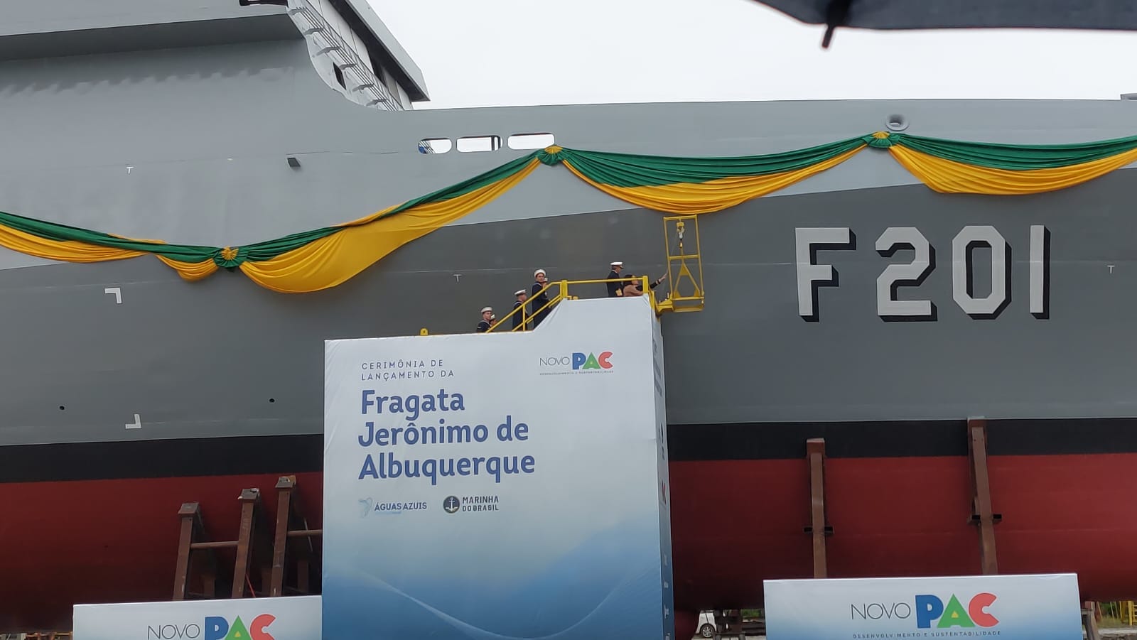 Em seu discurso, que fechou a cerimônia de lançamento da fragata Jerônimo de Albuquerque, o vice-presidente também agradeceu a escolha da esposa para ser madrinha da embarcação lançada.