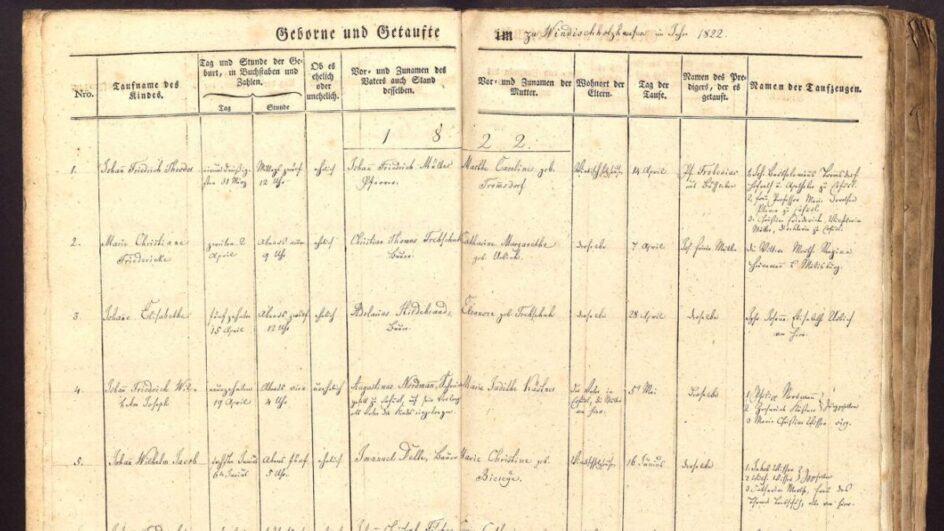 Um dos documentos encontrados durante a pesquisa é o próprio registro de nascimento de Fritz Müller. O naturalista nasceu no vilarejo de Windischholzhausen, perto de Erfurt, na Alemanha, em 31 de março de 1822. O jornalista mostra que o livro de registros da pequena paróquia luterana ainda guarda o nome de Johann Friedrich Theodor Müller na primeira linha de nascimentos daquele ano, incluindo o horário que veio ao mundo: às 12h.