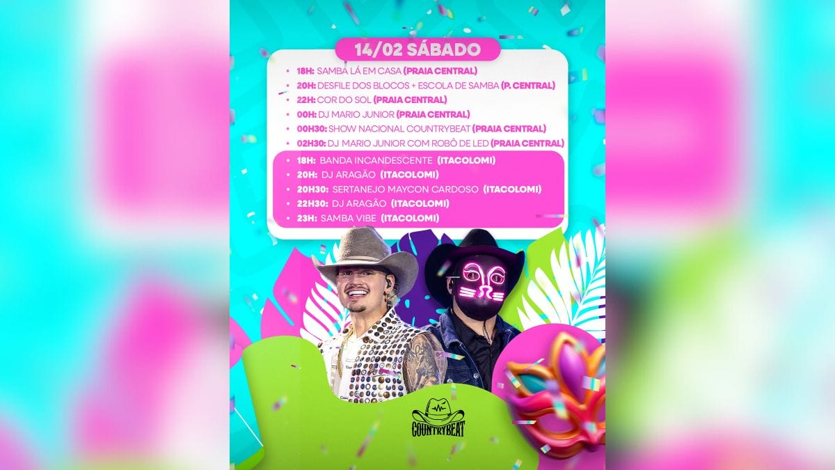 A “Folia BP” vai ocorrer em dois pontos da cidade. A Praia Central vai ganhar o principal palco da edição com os shows de CountryBeat e Turma do Pagode.