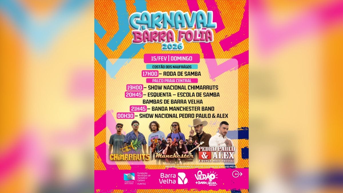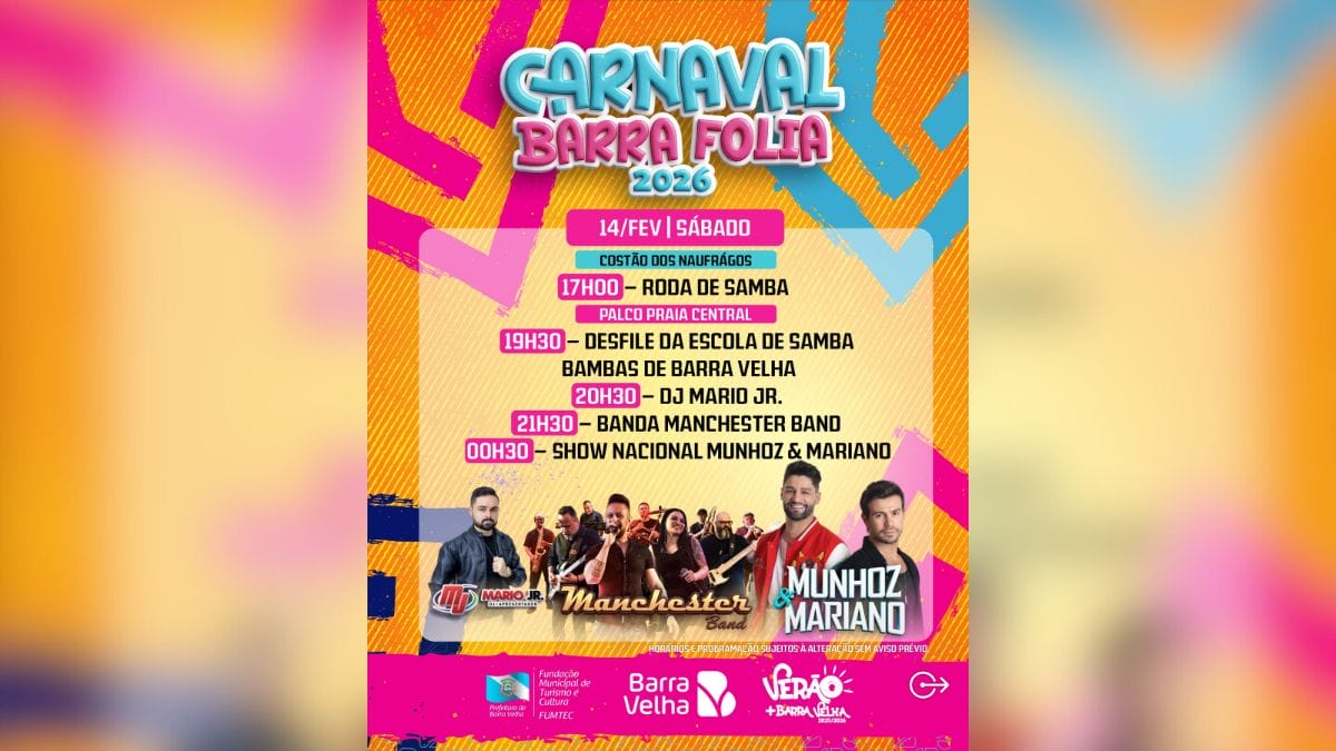 Com shows de artistas nacionais consagrados, Barra Velha se prepara para receber milhares de foliões no Carnaval Barra Folia 2026. A programação ocorre até o dia 16 de fevereiro e promete transformar a cidade em um grande palco a céu aberto.