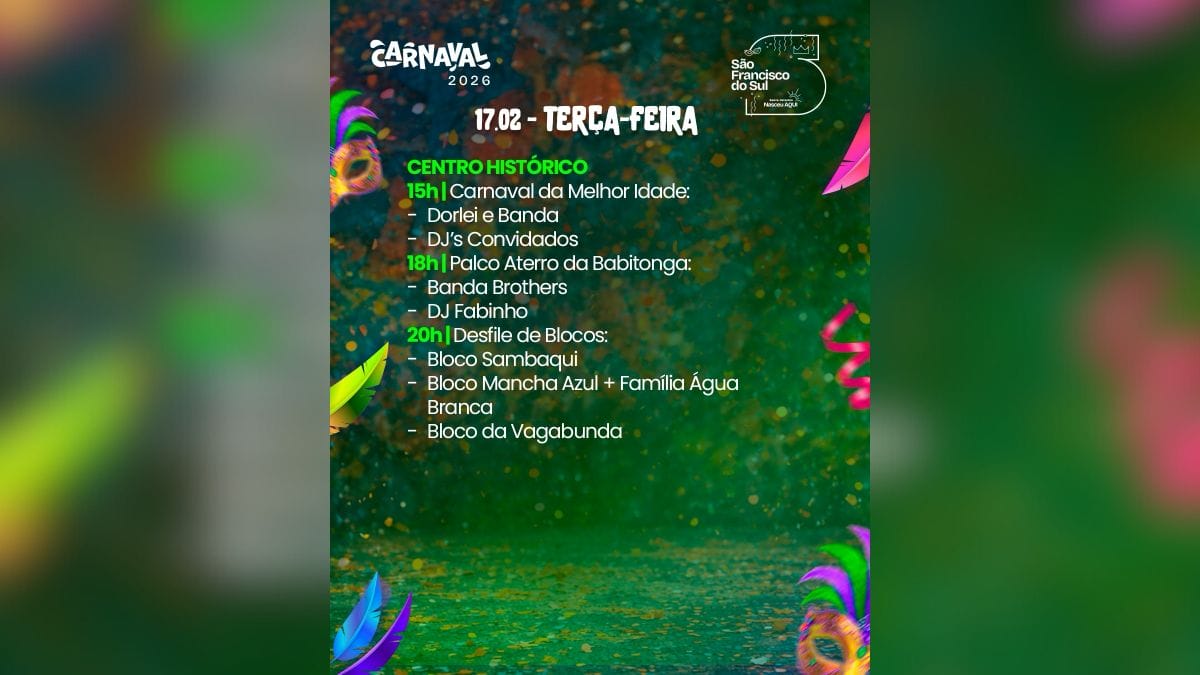 A folia já começou no Norte de Santa Catarina. O Carnaval 2026 trará diversas atrações para a região, como show nacionais, desfiles de escolas de samba e bloquinhos. Ao todo, serão seis dias de muita festa nas cidades de Itapoá, São Francisco do Sul, Barra Velha e Balneário Piçarras.