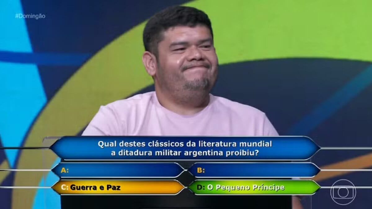 Mesmo após utilizar recursos de ajuda e eliminar duas alternativas, Cordovil optou por “Guerra e Paz”. No entanto, a resposta correta era “O Pequeno Príncipe”. A obra de Antoine de Saint-Exupéry foi censurada durante o regime do general Rafael Videla por ser considerada portadora de ideias subversivas para a época.