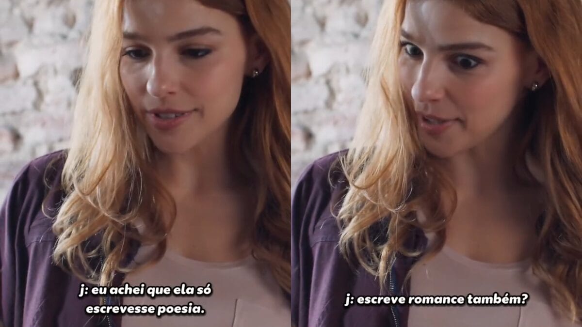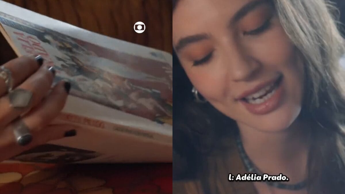 “Adélia Prado? Eu achei que ela só escrevesse poesia, escreve romance também?”, questiona Juquinha. “O romance está no ar”, responde Lorena, que fecha o livro, com a câmera focando bem na capa. A edição que a personagem está lendo é de 1980, com uma capa diferente da que está à venda atualmente.