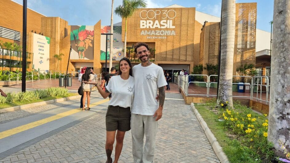 O trailer branco que atravessou toda a costa brasileira se chama Jandira. Dentro dos seis metros quadrados, há quase sete anos, moram a engenheira ambiental Diulie Tavares, 35, e o oceanógrafo Rafael Langella, de 32 anos. O casal de Santa Catarina é criador de um dos maiores projetos de educação ambiental itinerante do Brasil, o Somos do Mar. Eles chegaram ao “ponto final” da expedição, Belém, justamente no mesmo mês em que ocorre a 30ª Conferência das Partes (COP30).