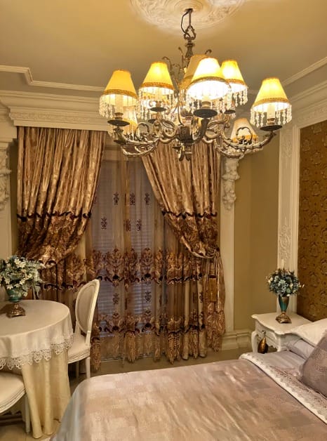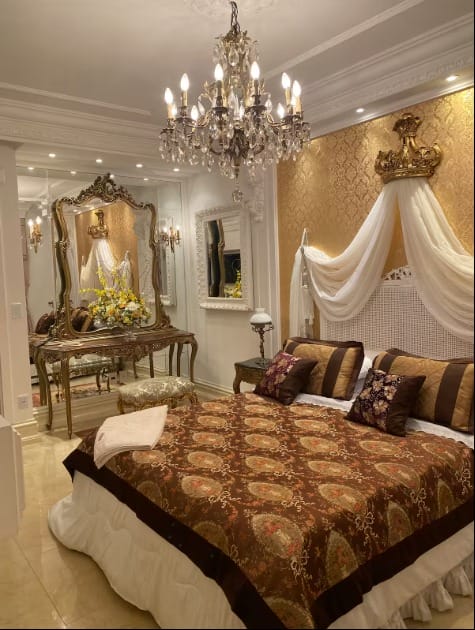 O palácio tem quatro suítes, que são locadas separadamente. Cada uma leva um nome específico. A Princesa de Gales, por exemplo, pode ser reservada por valores a partir de R$ 300. Agora se o hóspede quer um pouco mais de luxo, aí pode escolher a Presidencial. Nessa suíte, desde a cama, os lustres e a banheira remetem aos gostos de Louis XVI, rei da França em 1774.